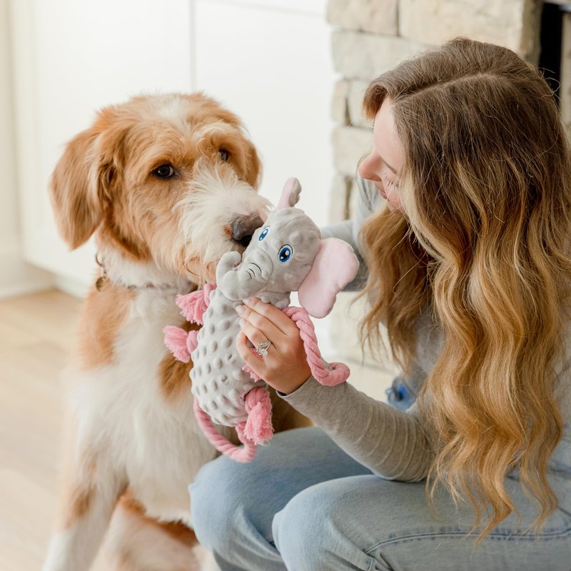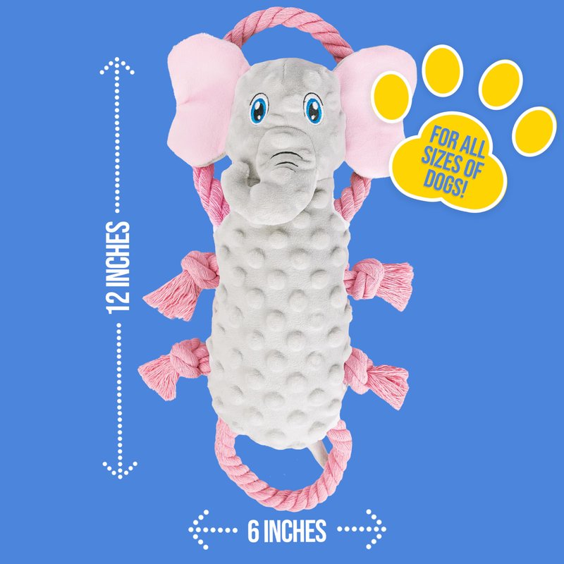 everyday joy Squeaky Dog Stuffed Animals Chew Toy - Crinkle Paper Tug of War Rope Plush Dog Toy - Soft Tough Squeaker Dog Entertainment Toys for Home Alone - Fun Boredom Busters for Dogs - Elephant