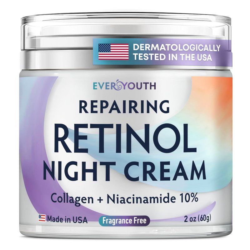 - Moisturizer Face Cream with Retinol: Renew the look of tired skin overnight with the most effective Retinol, Collagen, and Niacinamide 10% in our face cream for women. Everyouth's retinol night cream takes an ultimate approach to skincare: Retinol promotes cellular turnover, Collagen enhances skin elasticity, and Niacinamide evens skin tone. Together, these ingredients collaborate to deliver an anti aging moisturizer, helping soften, hydrate, and retain skin moisture.