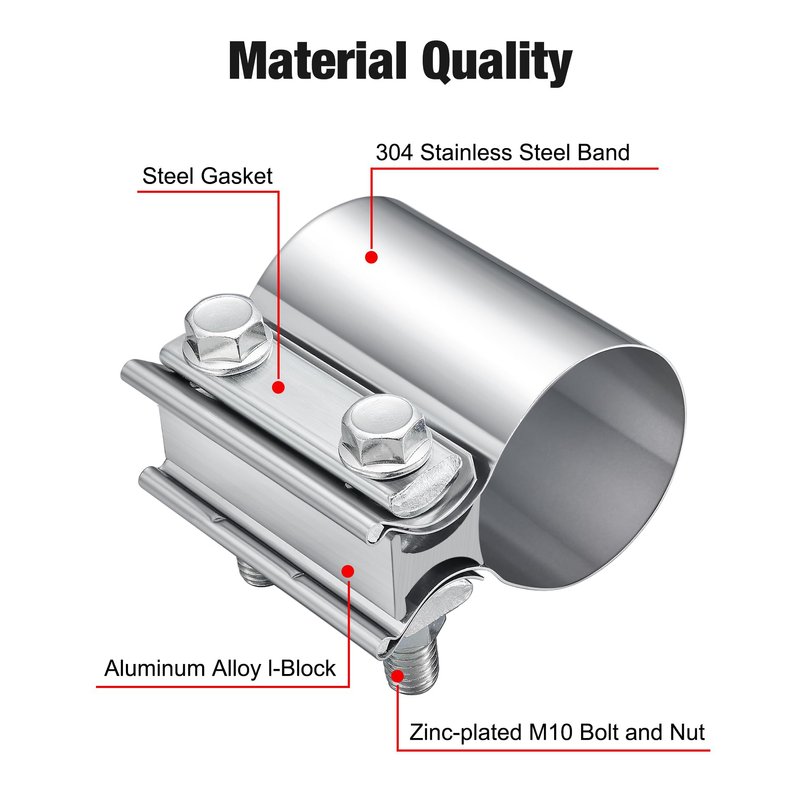 • Material: 304 stainless steel band, zinc-plated M10 bolt and nut, steel gasket, aluminum alloy I-block.