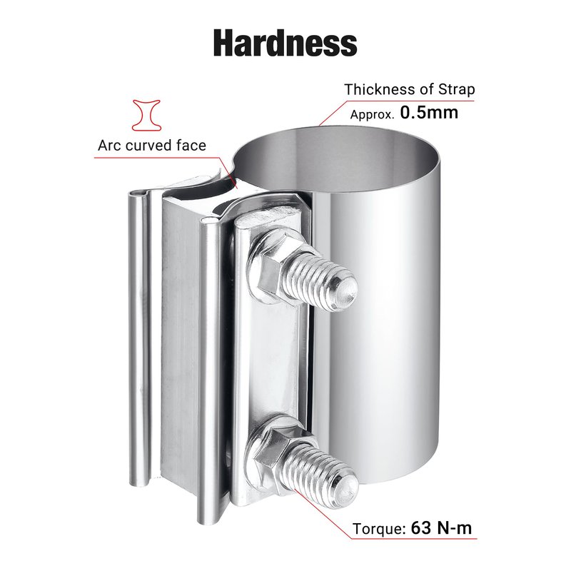 • Application: Butt joint band clamp is a simple, effective way to connect most of exhaust system components. Aslo can be used for muffler repair.