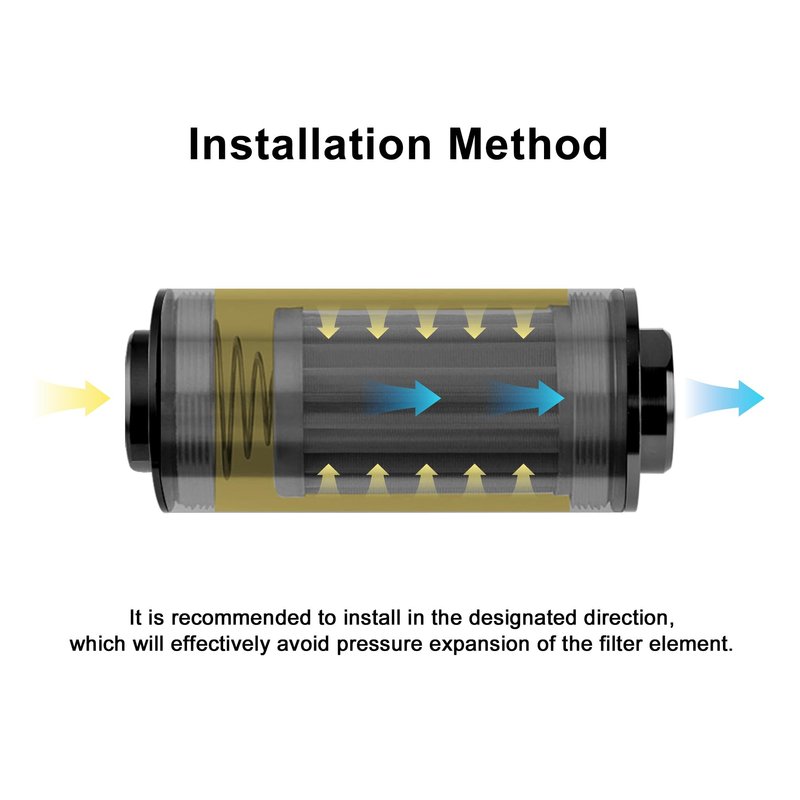 - [Installation Tips] We have debugged the installation direction of the fuel filters before delivery. Please check and ensure the closed end of the filter element docks with the spring. Let the liquid flow following the arrow from the spring end to the other end, and the fuel filter will serve longer.