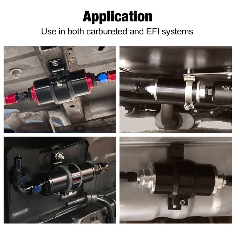 - [Application] Universal fuel filter, includes an6, an8, an10 adapters for different size applications.