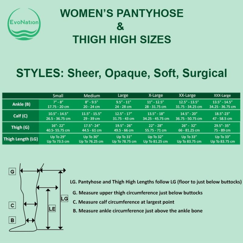 - COMPRESSION STOCKINGS FOR PAIN RELIEF: This thigh high garment has true graduated compression for firm pressure where your body needs it most. The 20-30 mmHg graduated compression massages and energizes tired, achy legs and sore muscles.