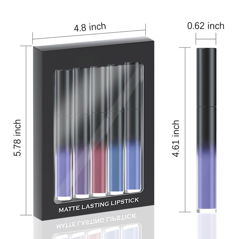 evpct 5Pcs Dark Light Blue Plum Purple Red Violet Matte Liquid Lipstick Lip Stain Sets for Women Matte+Lipstick Long Lasting 24 hr Hours Magic Lipstick 24 Hours original Waterproof Set02