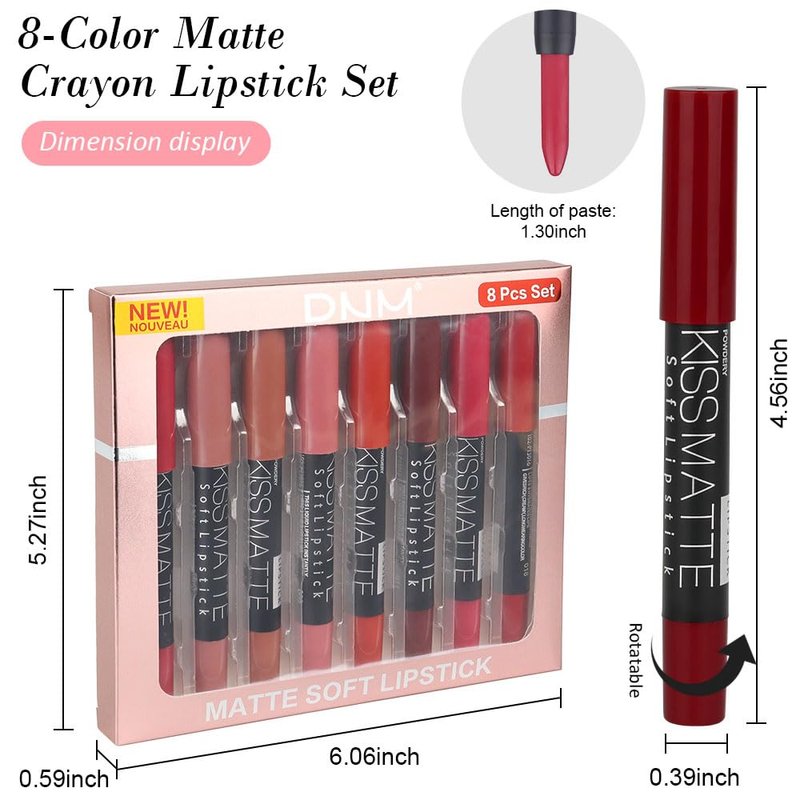 - ❤【8Pcs Silky Velvet Matte Crayon Lipstick Set】It is Velvet Matte lipstick set.Silky like chocolate,Lightweight texture, and intense hydration offer a zero-gravity silky feel.