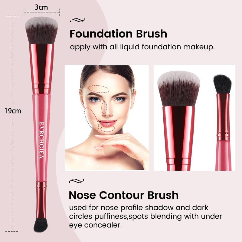 - [Complexion Perfection Foundation Contour Brush Set]--EVRCHGIEA 2pcs Blending Contour Brush for Makeup designed with double sided makeup brush, One end angled nose shadow contour brush, and the other end makeup foundation brush for cream. Another concealer blending brush blends your favorite concealer and blender brush used for other part of your face. Double-sided foundation brush for liquid makeup portable for travel.