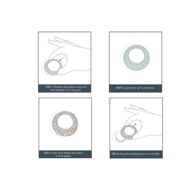 - EASY TO INSTALL: Unique design fits around the pop-up stopper already in your sink and effortlessly catches any type of human or pet hair without disrupting the flow of water.