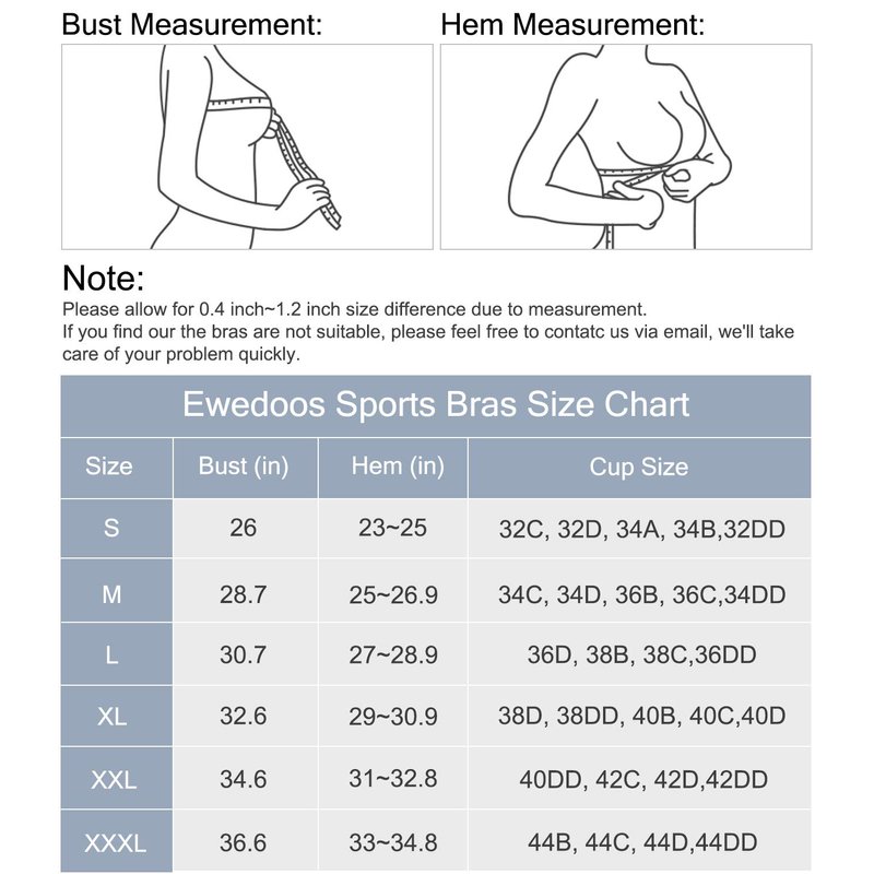 - Specialized Athleisure Brand - Ewedoos sports bras for women are made from an Ultra-Soft, Comfy and Moisture Wicking Fabric, designed to remove moisture from your body and provide maximum comfort. These sports bras for women high support come with a Comfy Racerback which enhances Maximum Stability that is also perfect for any type of High-Impact Activity.