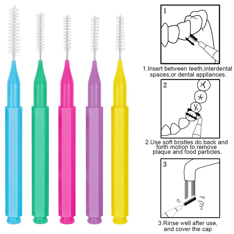 - LARGE QUANTITY:Package includes 100 pieces interdental brushes in 5 bright colors.Sufficient quantity can meet daily life using and replacements needs,suitable for personal and family use.