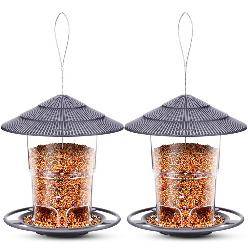 - 2 Pack Bird Feeders Outside: Up to 3.12 LB (2 pack) of all varieties of wild bird seeds to attract red finches, tits, house finches, birds, blue birds, warblers, starlings and more. You can hang the bird feeders for outside in different places.