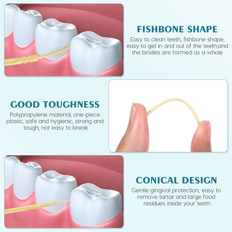 This product is a set of interdental brushes for tooth care. Made by soft material, comfortable to remove food debris. It can makes you maintain oral hygiene and prevent tooth from decay. Packed in bottles, lightweight and easy to carry.