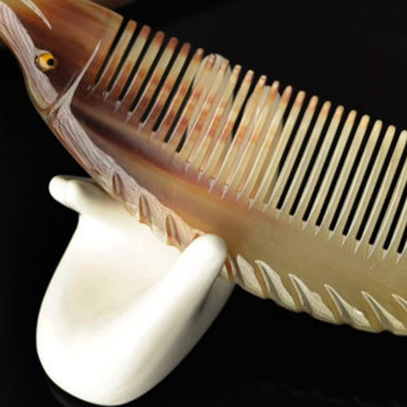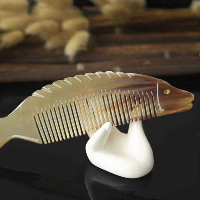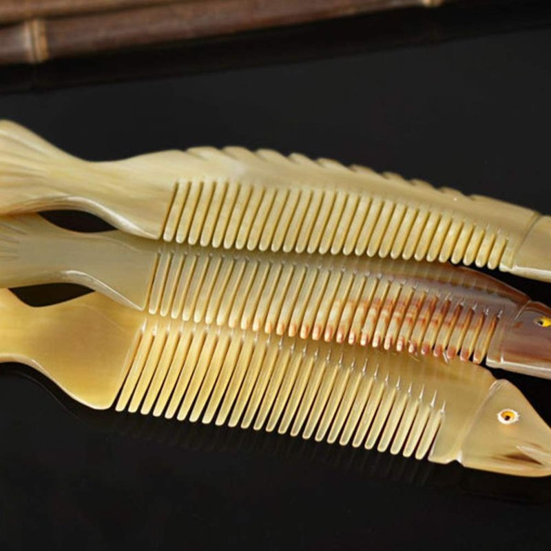 - Ox Horn Hair Comb Hairdressing Tool Creative Fish Shape Comb Natural Delicate Horn Comb Portable Hair Smoothing Comb for Lady Home Women Trip