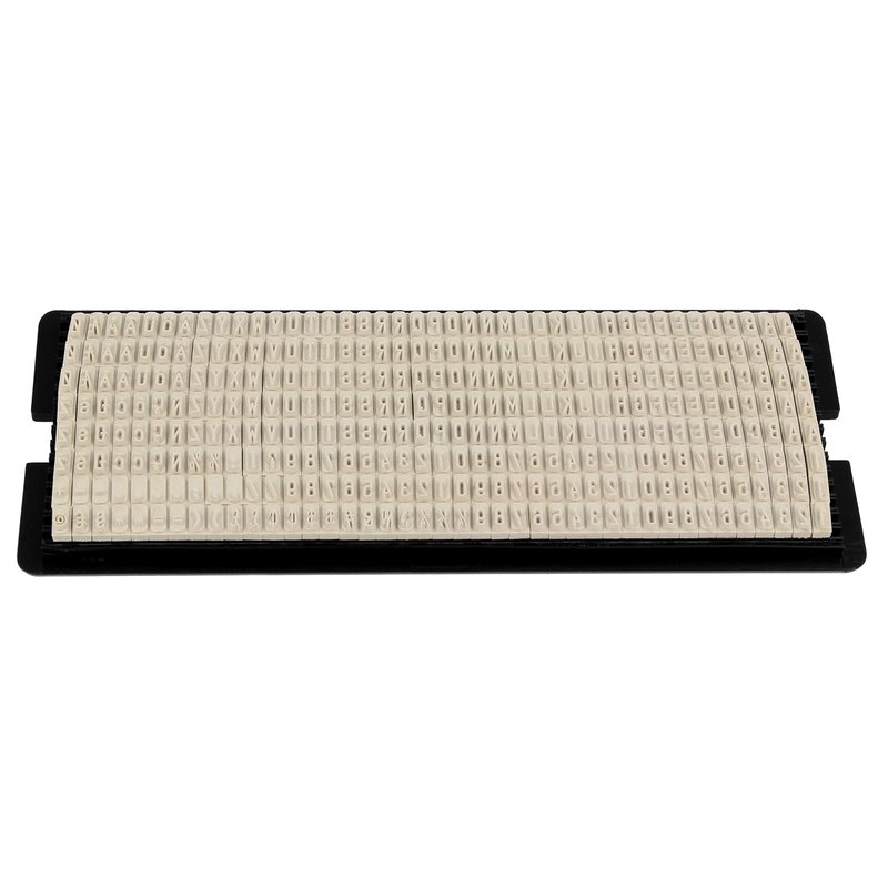 - Includes: stamp, characters (letters, numbers and symbols), tweezers, and a black stamp pad