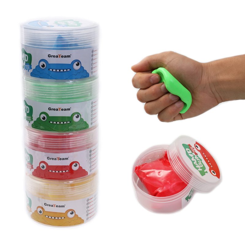 - 👏【Package and Hardness】Strong packaging is better for preservation. Each container of therapy putty is color coded by resistance level for additional convenience. The yellow putty is rated as extra soft. The red putty is soft, the green is medium and the blue putty is rated as firm. 1.8 Oz(50g) is enough to train your palm without wasting.