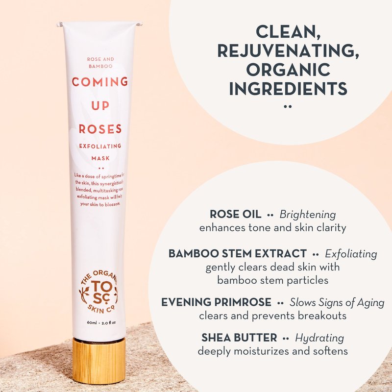 Exfoliating and Hydrating Face Mask | Coming Up Roses by The Organic Skin Co. | Exfoliating Face Wash and Face Scrub | Facial Masks for Women Skin Care | 2 Fl Oz