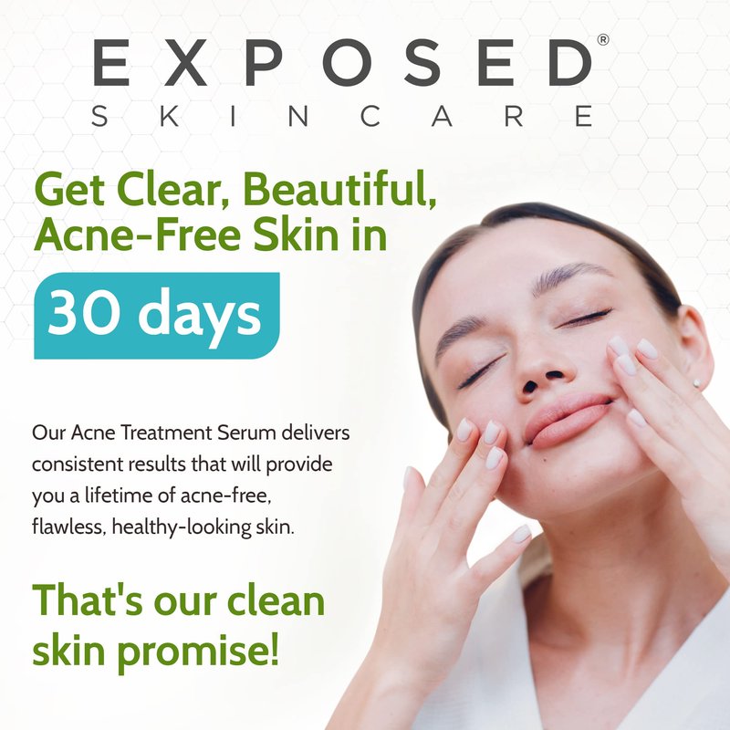 - The Exposed Acne Treatment Serum penetrates deep into pores to prevent new blemishes and whiteheads. The lightweight gel is formulated with benzoyl peroxide and tea tree oil to fight acne-causing bacteria, and green tea extract to naturally calm and heal skin throughout the day.