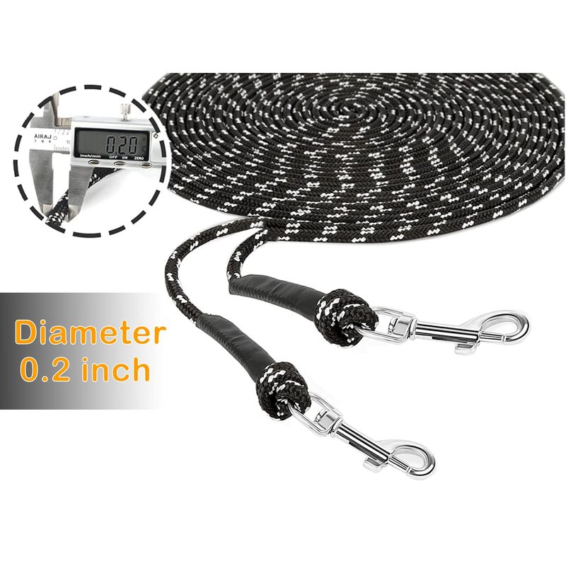 Durable and lightweight, our dog long line is made with the same material as rock climber’s rope, ideal for outdoor activities. Two metal clips are well crafted, 360 degree rotation, no worries about tangles or get caught underbush. Designed with two clips, the cat lead can also be tied to a pole or tree, free your hands temporarily