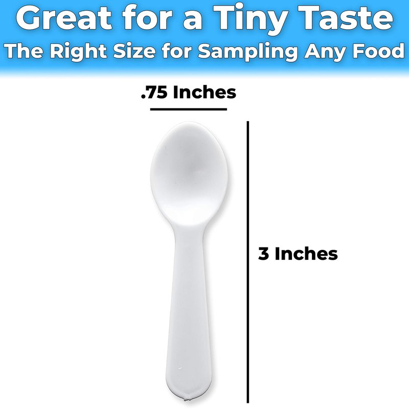 Extra Sturdy, BPA Free 100ct Plastic Tasting Spoons. Disposable Mini Tasters for Sampling or Individual Portions of Ice Cream, and Appetizers. Great for Food Trucks, Parties and Events