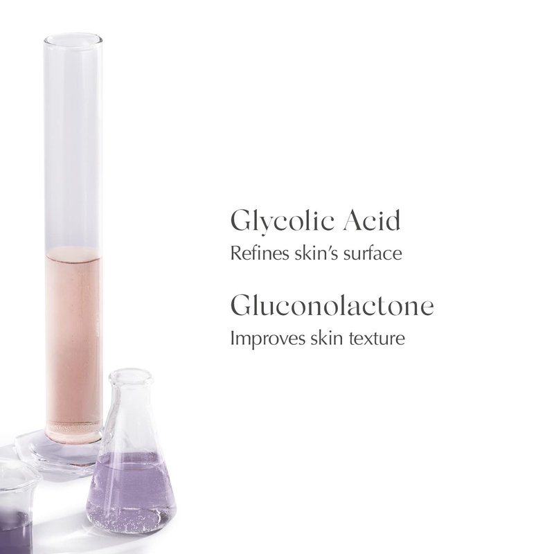 - Foaming soap-free facial cleanser and makeup remover with glycolic acid