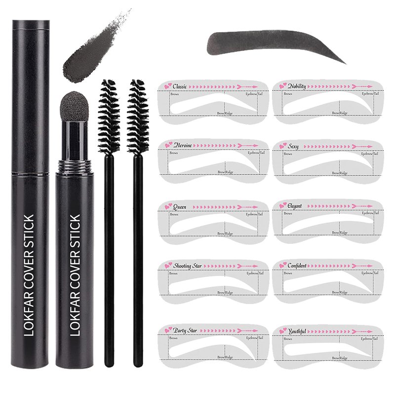 1 X Eyebrow Stamp, 2 X Eyebrow Brushes, 10 X Eyebrow Stencils