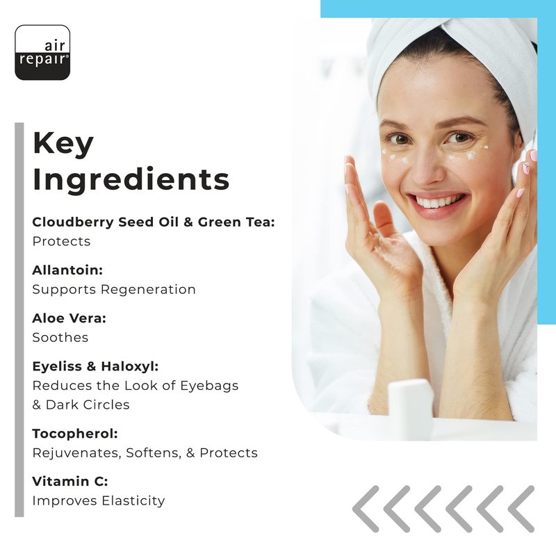- Pat on a Nourishing Blend: The Air Repair Skincare soothing eye cream moisturizer has allantoin, cloudberry, and eyeliss that condition the skin around your eyes for an instant under eye wrinkle repair and an anti aging eye cream for women and men.