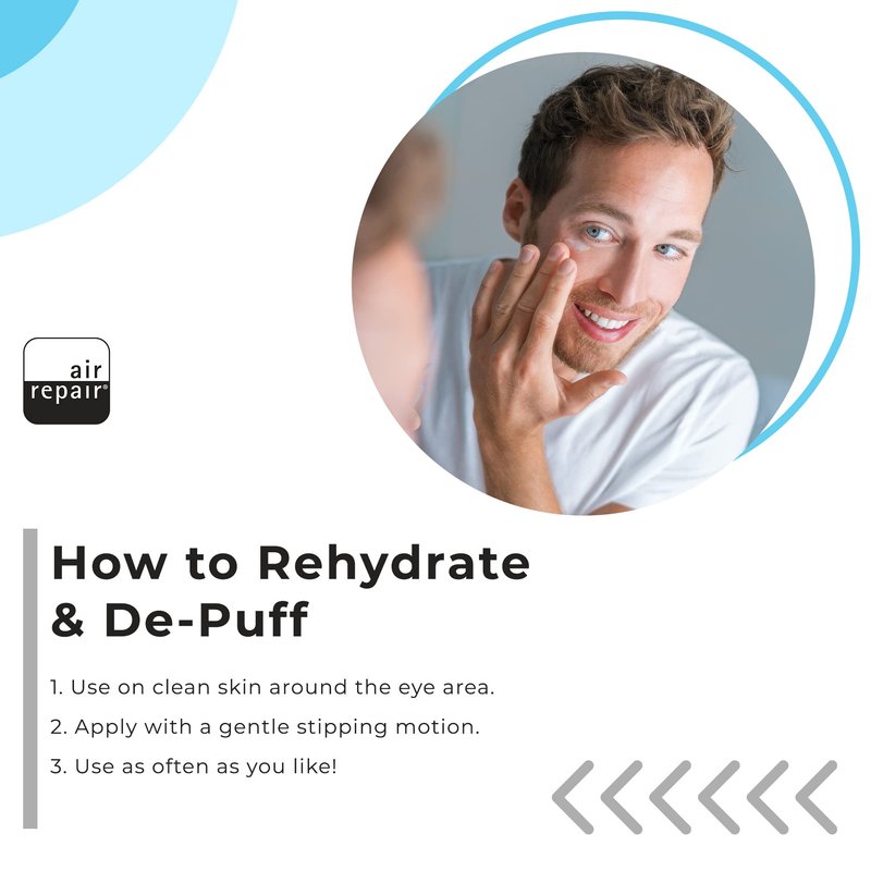 Get a More Dazzling Look Look brighter and more glowing with Air Repair Skincare Eye Cream for puffiness, dark circles, and fine lines. Designed to work as a hydrating moisturizer for the skin around your eyes, this skin care under eye cream for dark circles and puffiness works wonders in making you look younger and more radiant! Sensitivity mediators like light, dust, and weather cause what we call "inflam-aging". Our depuff eye cream reduce dark circles and work well as a skin repair cream for eye puffiness, eye cream black circles cannot stop, and a night eye cream for bags under eyes. Say goodbye to premature aging caused by things you cannot control with our petroleum, paraben, and mineral oil free moisturizer and soothing repair cream. Give the best skin care gifts for women and men with our haloxyl and aloe vera eye cream. What’s in Our Under Eye Moisturizer Cream: Purified Water, Aloe Vera Gel, Glycerin, Emulsifying Wax N.F. , Magnesium Ascorbyl Phosphate, Sunflower Oil, Octyl Palmitate, Cetearyl Alcohol. Hydroxysuccinimide, Chrysin, Palmitoyl Oligopeptide and Palmitoyl Tetrapeptide-7 (Haloxyl). Hesperidin Methyl Chalcone (and) Steareth-20 (and) Dipeptide-2 (and) Palmitoyl. Tetrapeptide-7 (Eyeliss), Super Oxide Dismutase, Panthenol, Ceramide 3, Cloudberry Seed Oil, Heat Shock Proteins, Tocopherol Acetate, Mixed Tocopherols, Flax Seed Oil, Borage Oil, Rosehip Oil, Olive Squalane, Soy Lecithin, Green Tea Extract, Sweet Almond Oil, Allantoin, Tromethamine Stearate, Glyceryl Monolaurate, Cocoa Butter, Glyceryl Stearate, Dimethicone, Phenoxyethanol, Ethyl Hexyl Glycerin, Benzyl Alcohol Benefits: Lightweight and non-greasy Prevents premature aging Reduces the look of fine lines, puffiness and dark circles Works well with other face products for women How to Use Our Moisturizing Eye Cream for Dryness and General Eye Skin Care: Use this sensitive eye cream green tea on clean skin. Apply around the eyes with a gentle stippling motion.