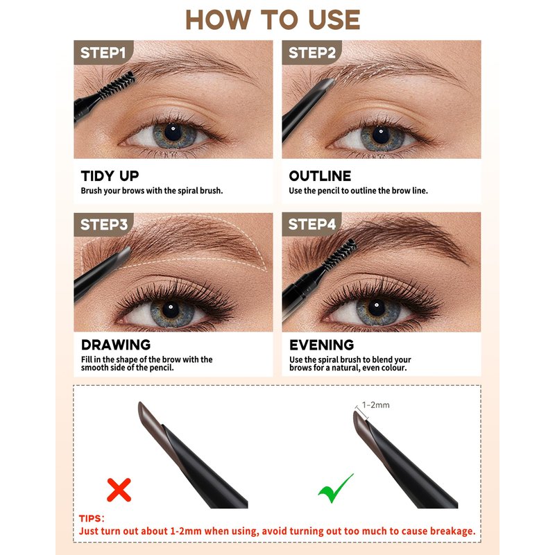 - Waterproof & Long Lasting- This eye brow pencil is waterproof, smudge-proof and long-wear. It is composed of high-quality ingredients, soft textured and highly pigmented, glides smoothly, delivering evenly colored brows even when layered a several times, can last all day