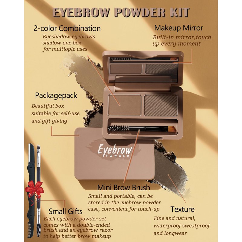 - WHAT WILL YOU GET - This eyebrow powder with built-in mirror, you will get a 2-color eyebrow powder palette with mini double head brow brush and brow razor, it is very affordable. This eyebrow makeup kit can help you create a natural eyebrow look.