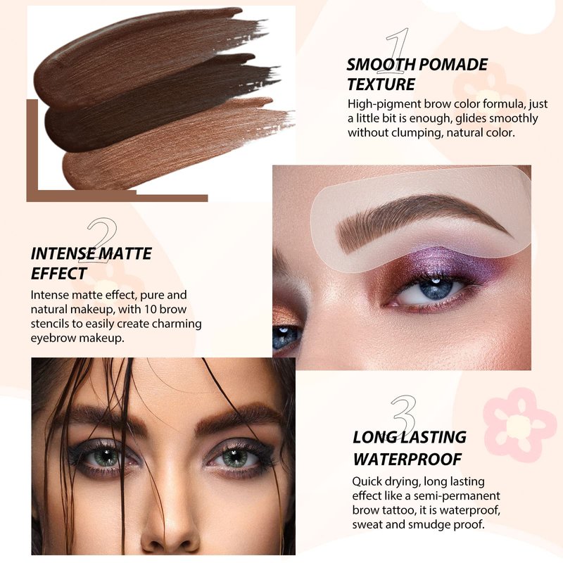 - 【Waterproof & Smudge-proof】- The eyebrow pomade has a gentle, natural formula that's cruelty-free, won't irritate and damage your brows. The brow pomade itself takes just a minute or so to completely dry, and then it does stay put, waterproof and lasts all day.