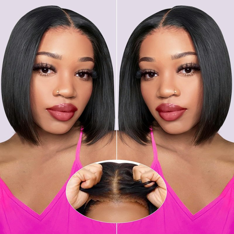 - Short Bob Wigs Human Hair Material: 100% Unprocessed Brazilian Virgin Human Hair Which Collected from Young Girls, Soft and Healthy, Full and Thick, No Tracks or Weft Showing, True to Length