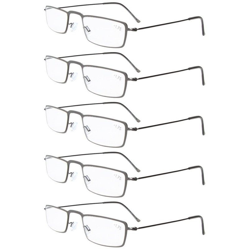 Eyekepper 5-Pack Stainless Steel Frame Half-eye Style Reading Glasses Readers Gunmetal +1.25