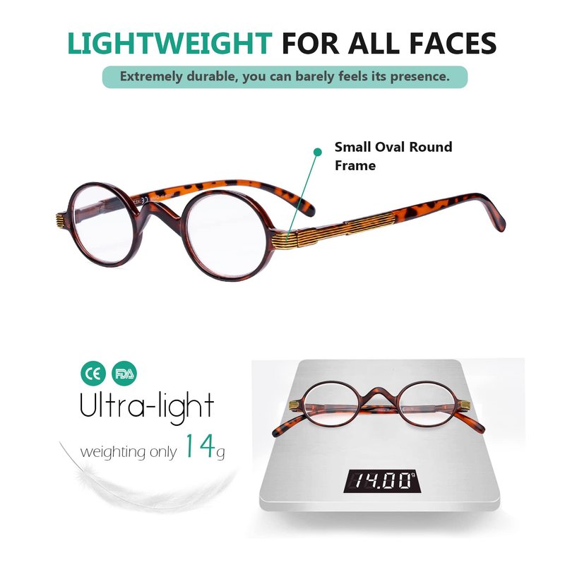 Great fashion vintage mini small oval round design reading glasses with spring hinges