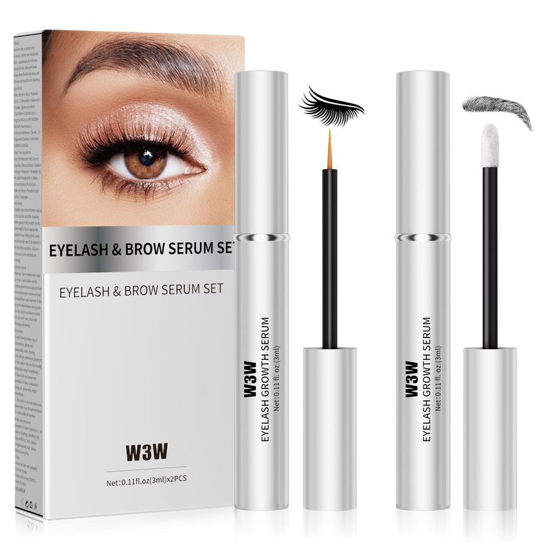 Eyelash and Eyebrow Growth Serum Two Piece Set, Eyelash Serum for Eyelash Growth Thickness, Stronger, Healthier Lashes & Brows, Longer, Fuller, and Thicker Lashes, Vegan & Cruelty-Free (3ml+3ml)