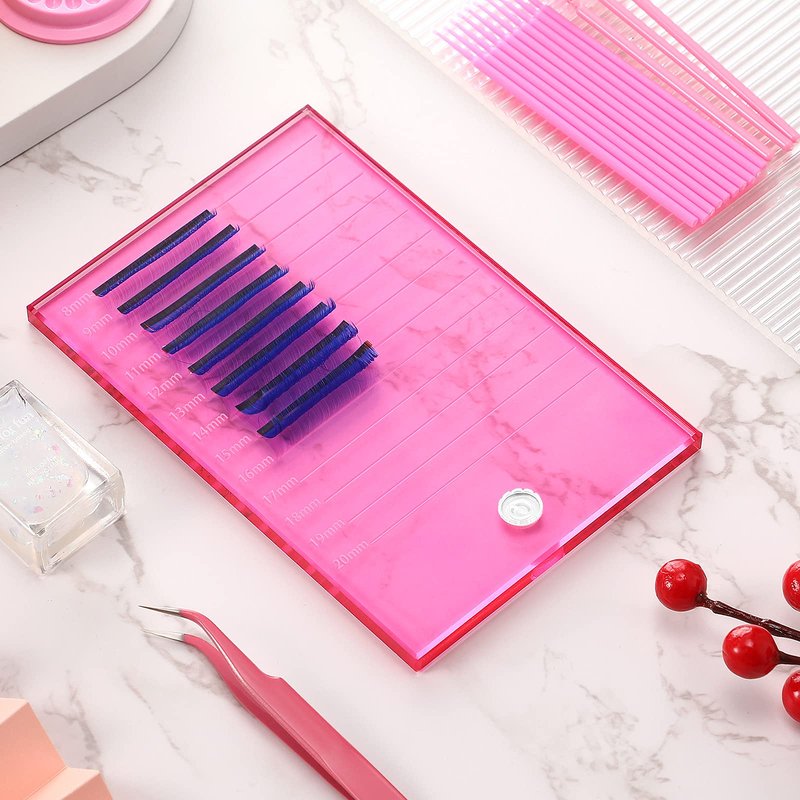 Eyelash Crystal Pallet Eyelash Extension Pallet Bigger Size Glass Pallet Lashes False Lash Tray Strip Adhesive Glue Holder for Eyelash Extensions (Pink,5.9 x 3.94 x 0.31 Inch)