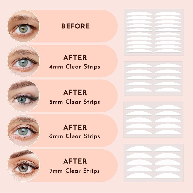 Customize your desired aesthetic with our range of four available sizes of eyelid lifter strips. Whether your eyelids are thin, thick, or swollen, our double eyelid tape accommodates diverse widths, enabling precise and personalized double eyelid effects.