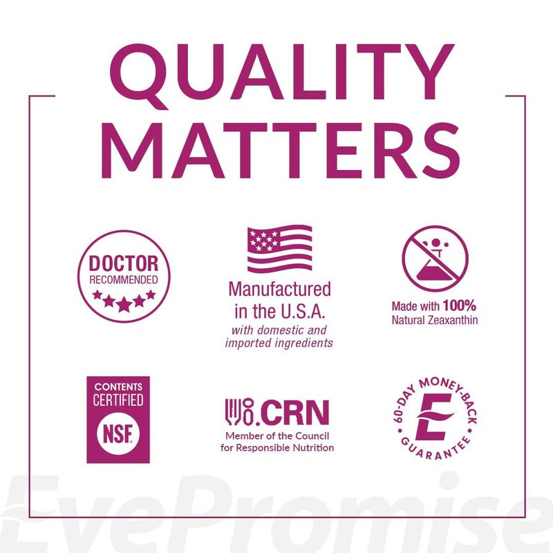 - Manufactured in the United State of America with domestic and imported ingredients - EyePromise sources natural ingredients, and our Omega-3 fish oil meets Prop65 and United States Pharmacopoeia requirements. We've done the work to source responsibly and certify our formulations, so you can be confident the EyePromise ingredient mix is accurate
