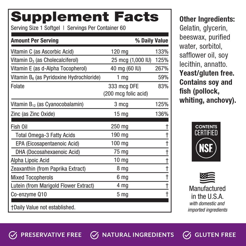 - Manufactured in the USA with domestic and imported ingredients - EyePromise sources natural ingredients, and our Omega-3 fish oil meets P65 and USP requirements. We've done the work to source responsibly and openly and certify our formulations, so you can be confident EyePromise products are supporting your eye health
