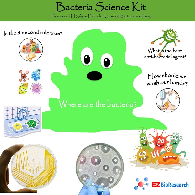 EZ BioResearch Bacteria Science Kit (IV) (Gift Pack): Prepoured LB-Agar Plates and Cotton Swabs. Exclusive Free Science Fair Project E-Book Packed with Award Winning Experiments. (IV Gift Pack)