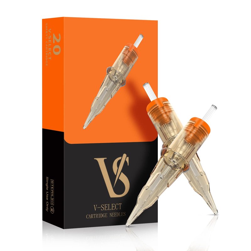 - 【Safety and Sterilized】V-SELECT cartridges needles used light clear color tips shell, better visibility.Needle is made of surgical stainless steel, 100% EO gas sterilized and Individually packaged. Low profile housing & better ink flow & shaped on the inside,Smooth edges eliminate additional trauma.