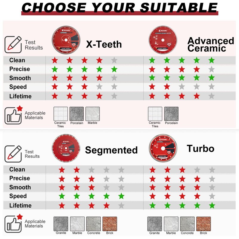 - 【Clean & Precise Cuts】The X-teeth turbo mesh rim and diamond-embedded cutting edge ensures clean and precise cuts with minimal chipping, making them ideal for intricate and detailed tile work or projects where aesthetics and precision are crucial.
