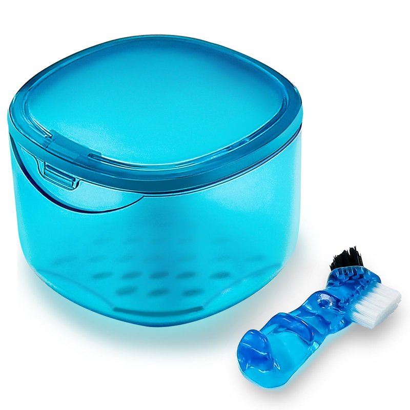 EZEELAI Denture Bath Case Denture Soaking Container with Lid Leak Proof, False Teeth Holder Mouthguard Storage Box Retainer Soaking Case - Transparent Blue