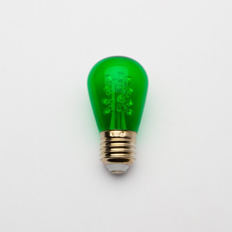 EZLS Green S14 LED Bulb - S14 Transparent 16 Led's - Green Patio String Bulb