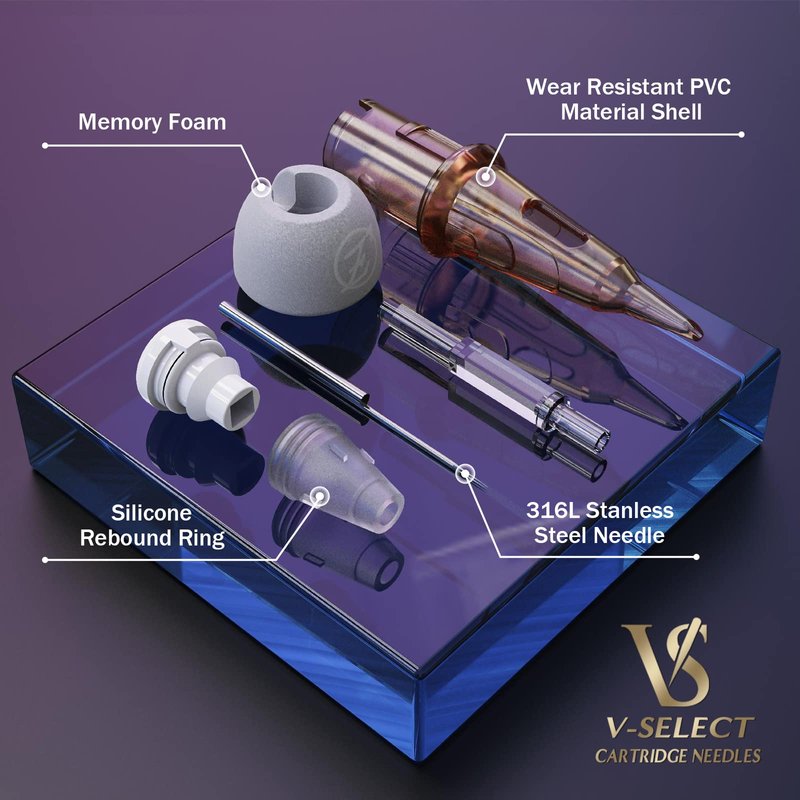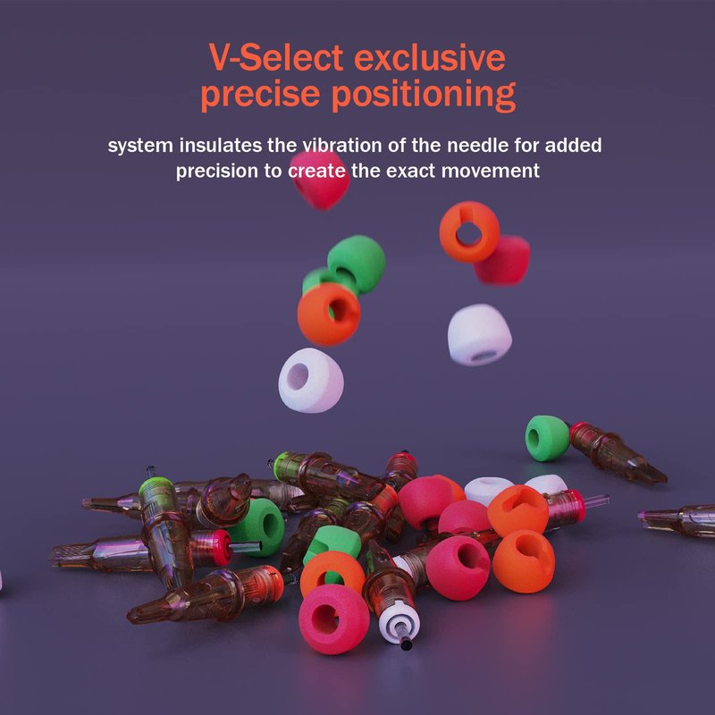 - 【Design】Powered by the V-System, the V-Select Tattoo Plus Cartridges give artist finger extra comfort, less finger fatigue and absorbs those damaging vibrations while tattooing.