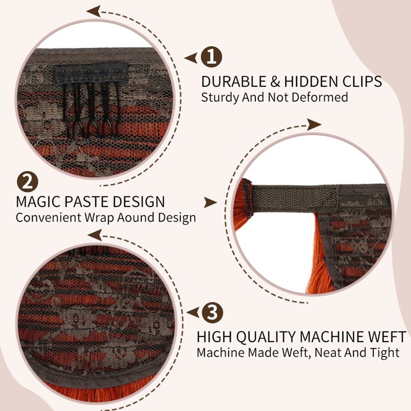 - 💖【Wrap Around Ponytail】Ponytail extensions with an easy-to-install clip-on comb and hair band with magic paste, add fullness and length to your mane for a beautiful transformation in an instant! Adopt breathable lace net design, No bound feeling and no irritation to the scalp.
