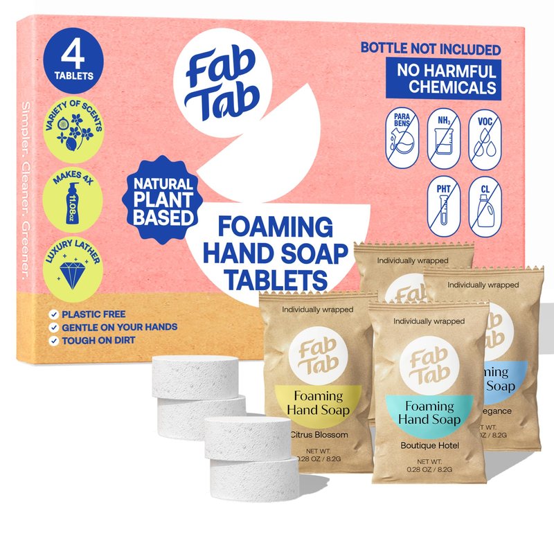FABTAB Foaming Hand Soap Kit - Natural Hand Soap - Bathroom Hand Wash - Plant-Based - No Harsh Chemicals - Variety scents - 4 Pack. Makes 4 x 11.9 fl oz (Bottle Not Included)