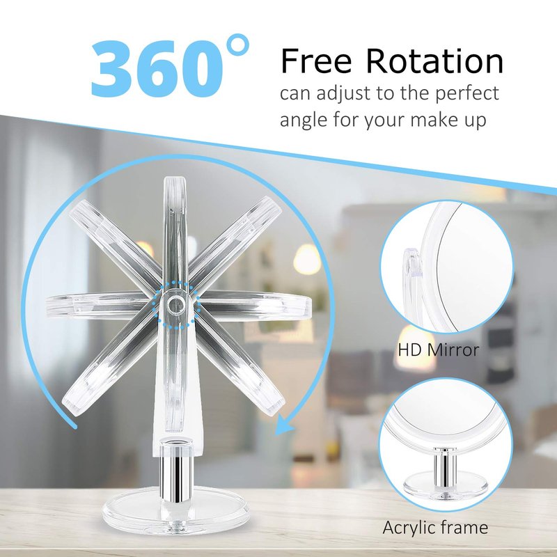 - DOUBLE SIDED MAGNIFYING MIRROR - 1x and 10x magnifying mirror, classic dual-sided design makes this makeup mirror much more easier to get a flawless makeup look. Our magnifying makeup mirror 1x 10x with stand to help the two sided mirror keep stabilization when your rotate this makeup mirror