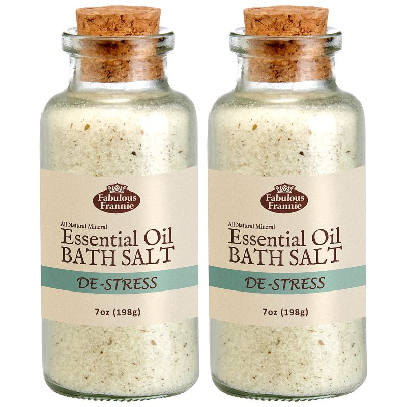 Fabulous Frannie Aromatherapy De-Stress Essential Oil Mineral Bath Salt Grapefruit, Ylang Ylang and Lavender Pure Essential Oils 7oz (Pack of 2)
