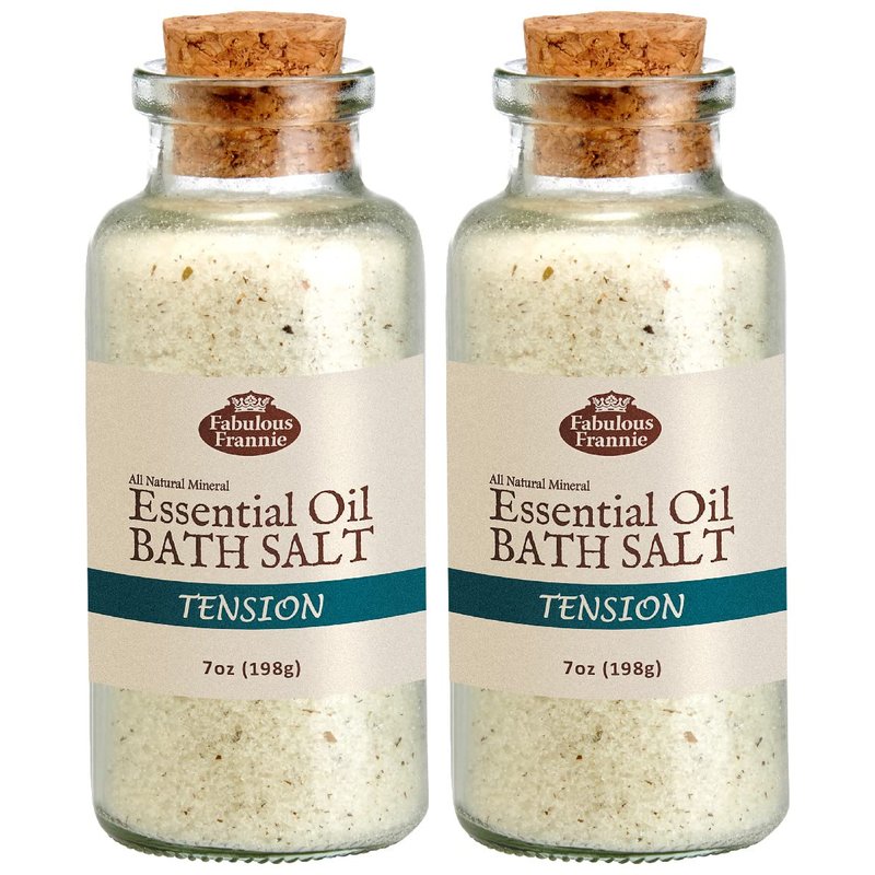 Fabulous Frannie Aromatherapy Tension Essential Oil Mineral Bath Salt Lavender, Peppermint, Rosemary and Grapefruit Pure Essential Oils 7oz (Pack of 2)