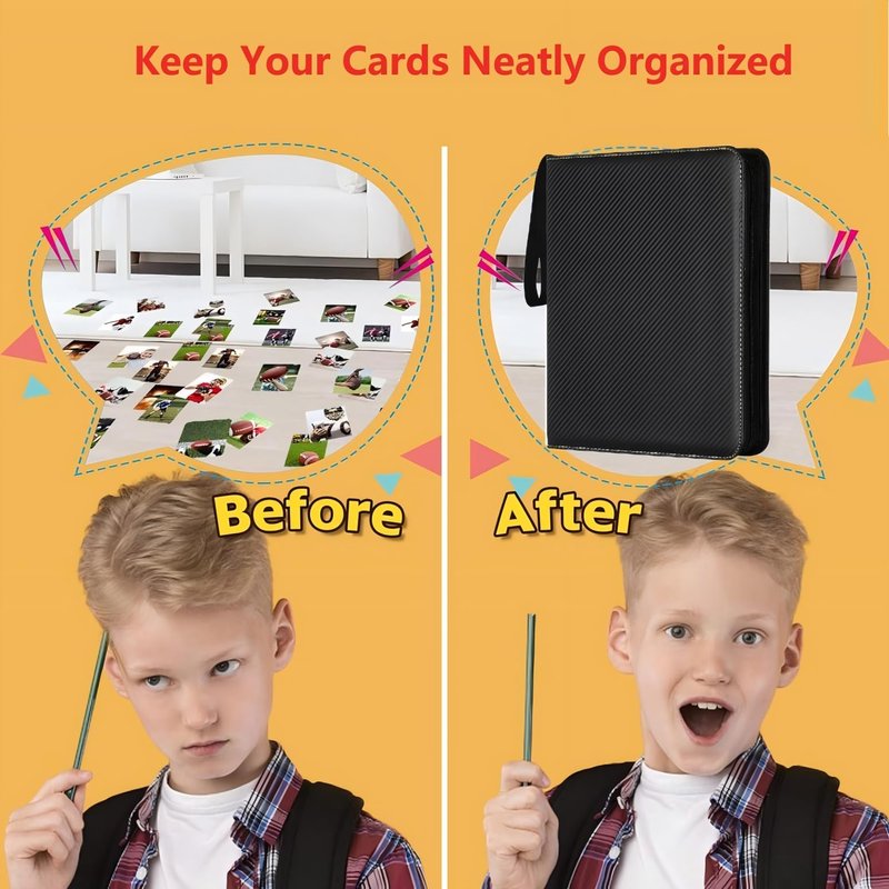 - 【Updated design 400 Pokects Card Binder】:The card binder 4 pocket has 50 double-sided protective sheets to hold up to 400 cards.It is refillable/expandable, and you can arbitrarily increase or reduce internal pages.Sports card binder can store and display all the trading cards you have, the cards can be stored in an orderly manner, instead of throwing them everywhere, which cultivates children's storage integration ability and help children develop good storage and organization habits.