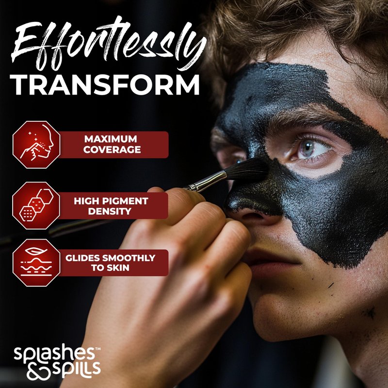 - KIND TO SKIN: At Splashes & Spills we are committed to making products that are as comfortable & safe to use as they are fun, that's why our face & body paint is gentle on the skin.